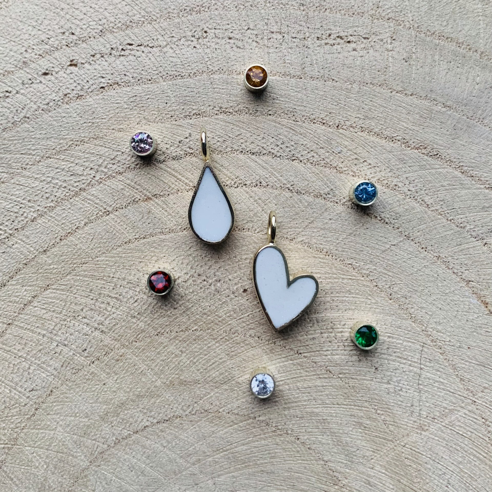 Bestel deze zomer een halsketting in 14k geelgoud met een moedermelkhanger (hartje of druppel) en krijg er gratis een geboortesteenhanger t.w.v. €130 bij!